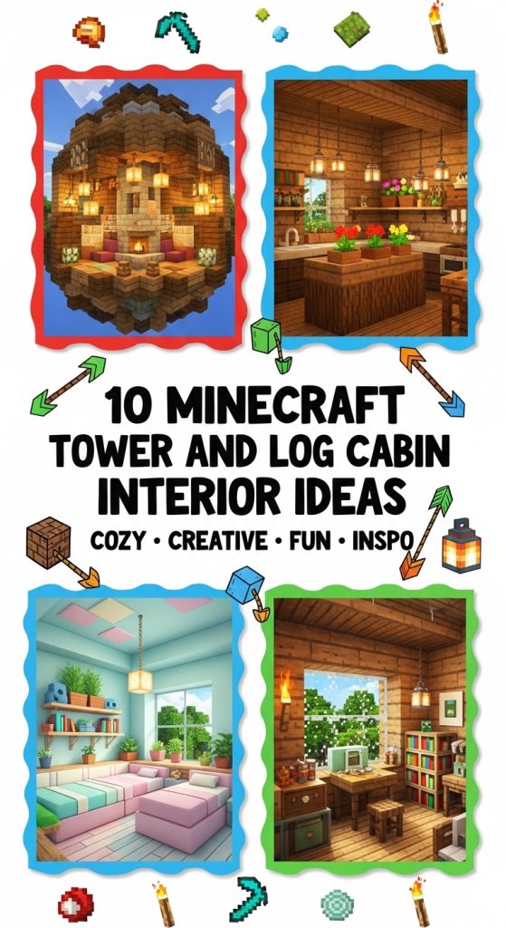 Minecraft towers and log cabins offer endless opportunities for creativity and functional interior design. Whether you prefer rustic warmth, medieval elegance, or modern rustic charm, these ideas provide inspiration for players looking to elevate their builds. From cozy bedrooms to panoramic lounges and practical crafting spaces, combining functionality with aesthetic appeal ensures your Minecraft home or tower stands out. With attention to detail, lighting, and decorative elements, even a simple log cabin or tall tower can become a Pinterest-worthy masterpiece.