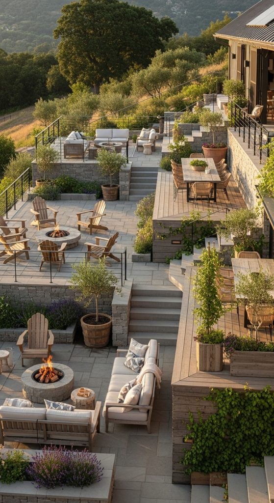 3. Terraced Outdoor Living Spaces That Flow Down the Hill