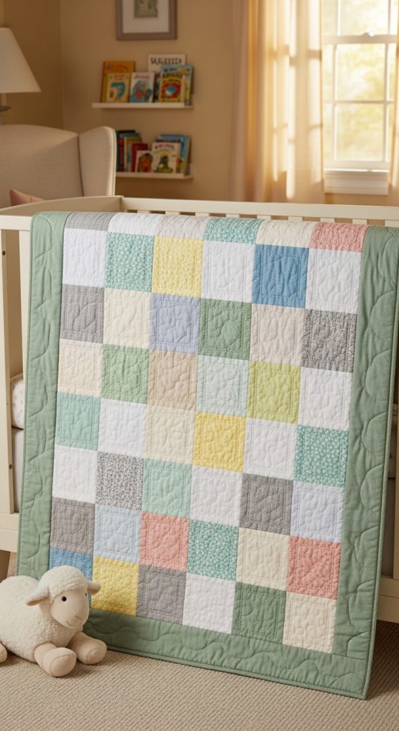 Floral patterns suit both modern and classic nursery themes. Quilting along the petal shapes or using a free-motion quilting technique adds depth and movement. Lightweight cotton or bamboo fabrics make this quilt breathable, perfect for gentle snuggles and warmth.