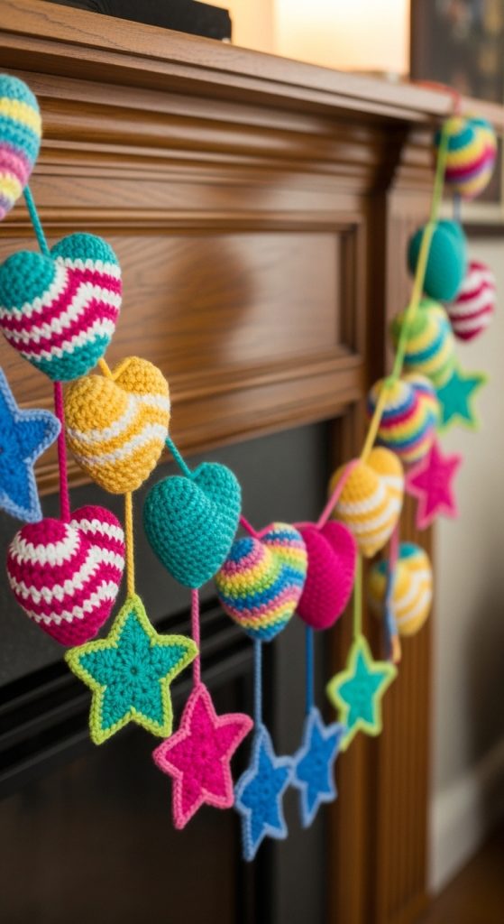 Crochet garlands are a versatile decoration that works for any season. From hearts and stars to flowers or mini pumpkins, garlands bring a whimsical touch to any space.