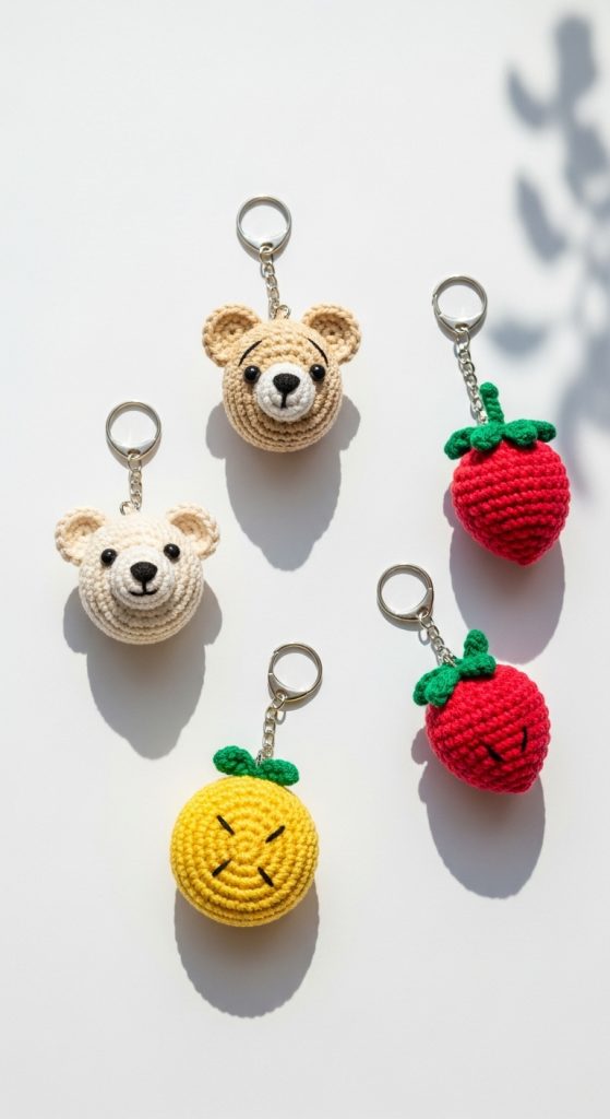 Small crochet keychains make thoughtful, personalized gifts. They can be shaped like animals, fruits, or even mini holiday ornaments.