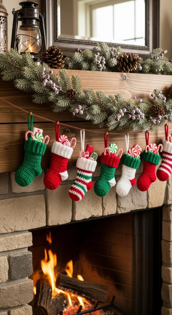 Mini crochet stockings are adorable gifts and ornaments that can hold small treats or notes. They can be customized with initials, stripes, or themed decorations.