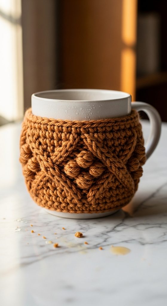 A crochet cup cozy is both functional and charming. Perfect for coffee or tea lovers, it protects hands from hot cups while adding a handmade touch to every drink.
