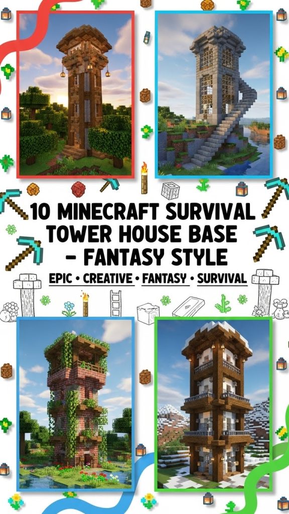 With these 10 fantasy-inspired tower house ideas, players can create Pinterest-worthy Minecraft survival bases that are both functional and visually stunning. Each tower has its own personality and can be adapted to your survival style, whether you prefer forests, deserts, mountains, or magical floating islands.