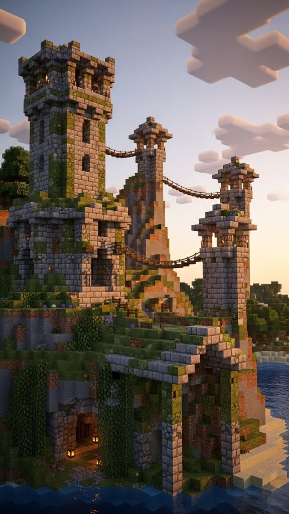 Perfect for survival mode, the Cliffside Watchtower is carved into the edge of a mountain or cliff. Made from stone and mossy cobblestone, it has a realistic medieval appearance. The tower overlooks the surrounding land, making it ideal for spotting mobs or other players in multiplayer.