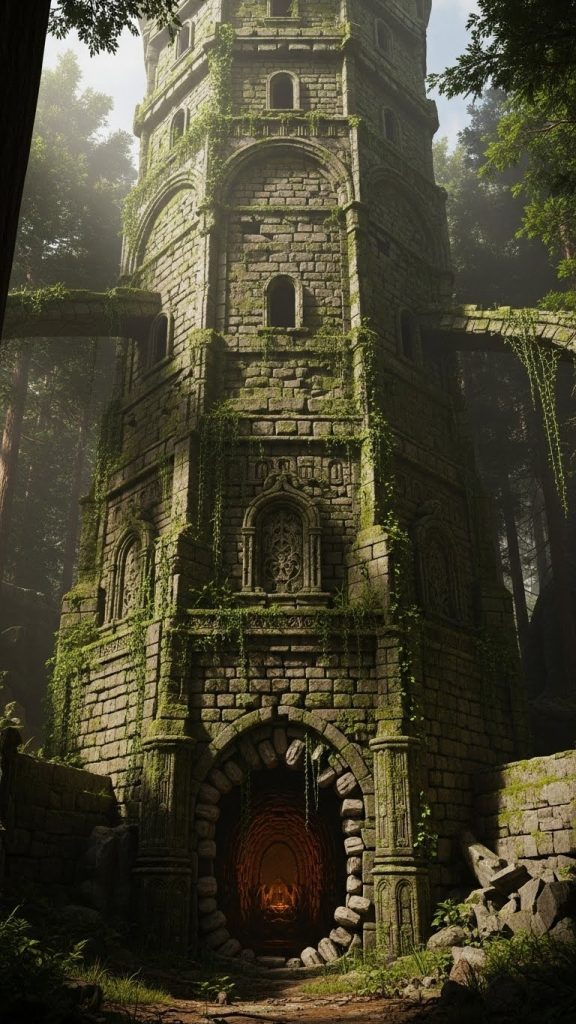 Inspired by ruins, the Ancient Ruins Tower combines mossy cobblestone, stone bricks, and cracked stone for a forgotten fantasy aesthetic. The interior can be simple with ladders and minimal furniture, emphasizing exploration and mystery. Overgrown vines and mossy paths make it look naturally reclaimed by nature.