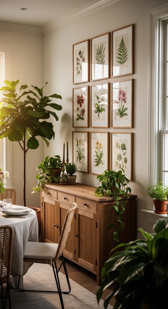 Bring the outdoors inside with botanical art prints. Detailed illustrations of plants, flowers, and leaves add freshness and serenity to your apartment. Pair them with natural elements like wooden shelves or jute rugs to amplify the organic feel. Botanical art is ideal for kitchens, bathrooms, or cozy reading corners.