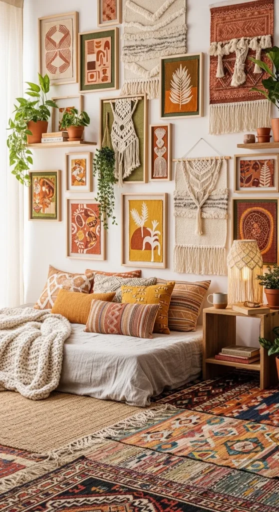 Art doesn’t have to be painted—it can be textile too. Framed fabric panels, vintage tapestries, or modern textile art add texture, warmth, and cultural richness. They work beautifully in bedrooms, living rooms, or study areas, providing both visual and tactile comfort.