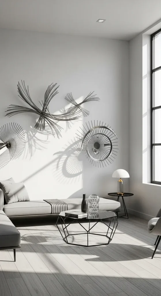 For a modern, tactile touch, 3D wall sculptures are a brilliant choice. These could be metallic shapes, wood-carved designs, or layered panels that cast shadows and change with the light. Perfect for living rooms or feature walls, 3D art adds depth and intrigue, turning ordinary walls into gallery-worthy displays.