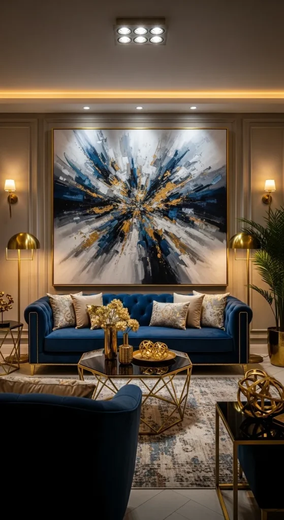 Make a bold statement with a single oversized canvas painting. Large, dramatic pieces—whether abstract, impressionist, or surreal—instantly draw the eye and elevate the sophistication of your space. Place it above your sofa, bed, or dining area to create a strong visual anchor.
